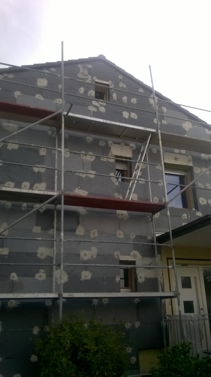 In some instances, exterior insulation is added to an old building only in one of the facades. It is comon in such cases that the finishing of the insulation in the corner is not correctly done. The insulation layer is at risk of damage due to weather conditions. The proposed solution is to add a temporary ending to the insulation layer, protecting it completely, but easily removed in the future, when the insulation layer is continued in the other facades. See illustration below.